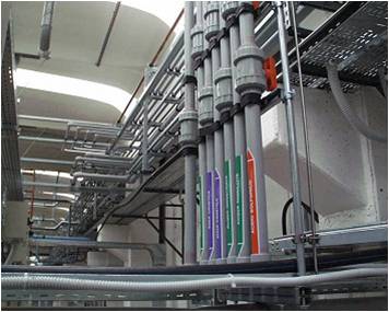 При разводке трубопровода в цеху, где любая утечка будет представлять опасность для персонала, а так же повлечь остановку производственного процесса мы предлагаем решение по разводке кислоты двойными полимерными трубопроводами (труба в трубе: ХПВХ/ПВХ, ХПВХ/ПП).
